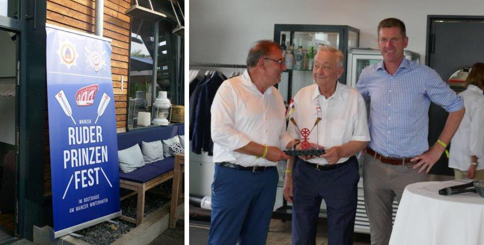 Über die Auszeichnung zum „Mainzer des Jahres“ zeigte sich Schmitz „sehr gerührt“. Er erzählte, als Kind wäre er gerne in den Mainzer Ruder-Verein eingetreten. Seinem Vater sei es aber lieber gewesen, dass er sich um die Schule kümmere. Mit dem vierten „Ruder-Prinzen-Fest“ seien Prinzengarde und Ruder-Verein „nun schon langsam in die Phase der Traditionsbildung“ eingetaucht, findet Martin Steffes-Mies, Präsident des Mainzer Ruder-Vereins. Und so feiern die mehr als 100 Gäste im „Bootshaus“ bei Musik von DJ André Engert bis in die frühen Morgenstunden, lassen es sich beim Sechs-Gänge-Walking-Buffet von Frank Buchholz schmecken und genießen die regionalen Weine.
