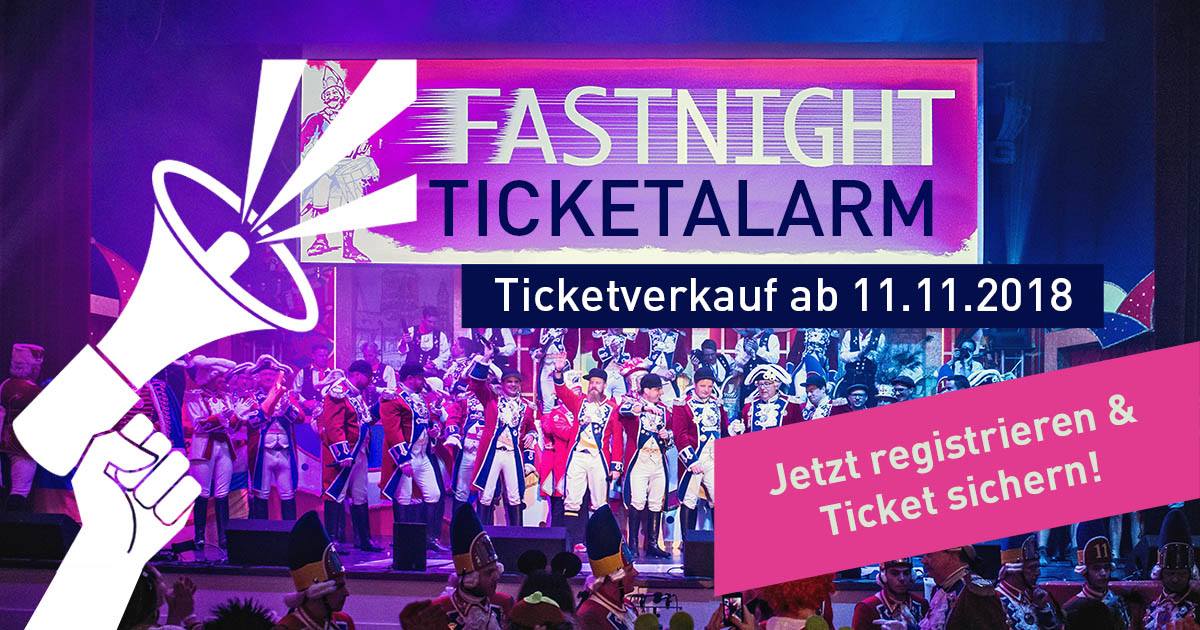 mehr InfoDie Tickets für FastNight, LastNight, RotRocksAltweiber-Party und den Prinzengardeball gehen online. Hier geht es zum Ticketalarm der FastNight